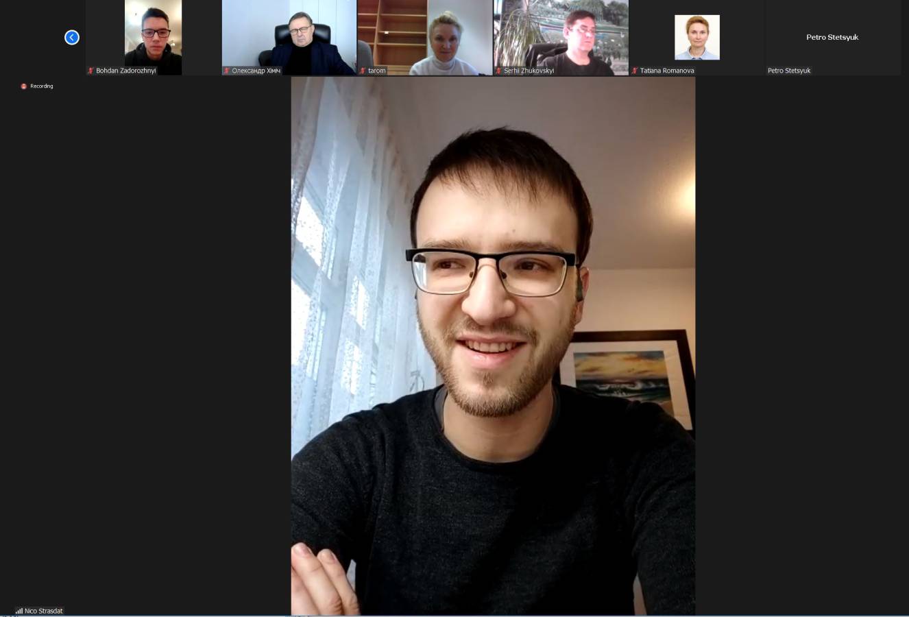 Модератор зустрічі – завідувач відділу Інституту кібернетики імені В.М.Глушкова НАНУ Петро Стецюк – наголосив на символічності того, що перше місце в конкурсі здобув аспірант, друге – студент, а третє – учень 10 класу: нагороди отримають як молодий учений, так і студент та школяр, які вже серйозно цікавляться наукою. П. Стецюк відзначив, що до початку цього змагання було дуже багато підготовчої роботи, і великий внесок у цю справу зробив доктор технічних наук Юрій Яськов, провідний науковий співробітник відділу математичного моделювання й оптимального проєктування Інституту проблем машинобудування ім. А.М. Підгорного НАН України.