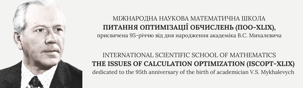 Запрошуємо Вас взяти участь у Міжнародній науковій математичній школі «Питання оптимізації обчислень (ПОО‑XLІX)», присвячена 95-річчю від дня народження академіка В.С. Михалєвича.